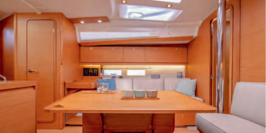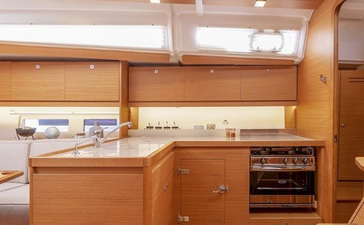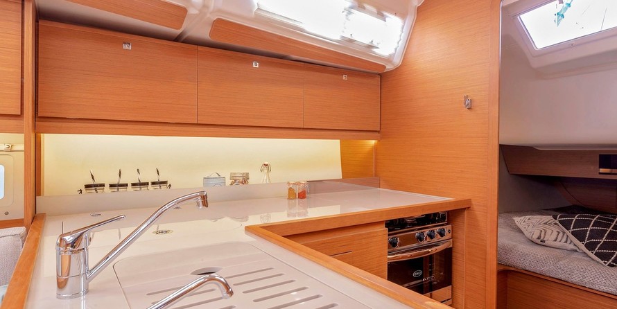 Boat equipment features classical mainsail, bbq, bimini and bow thruster. It also boasts an an audio system, outside speakers and inside speakers. The fully-equipped galley includes an oven, cooker, sink and kitchen utensils.