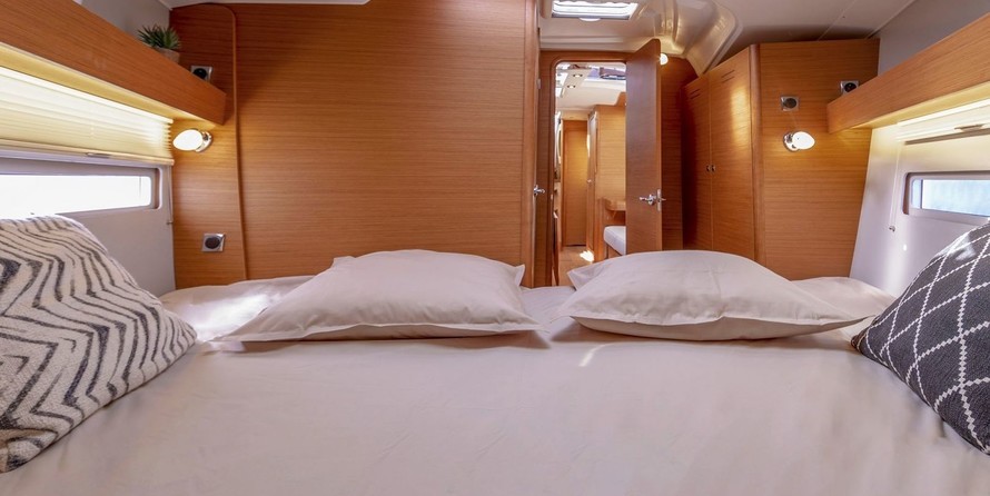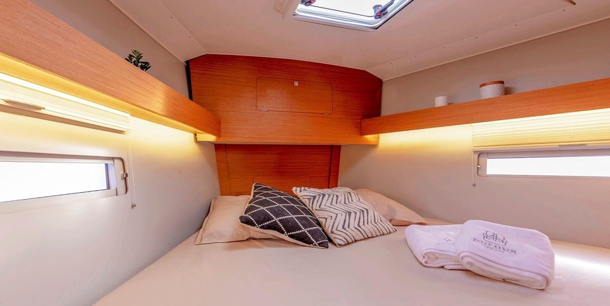 Yaya can accommodate up to 6 people in 3 double cabins. Pillows and blankets are included in the price.