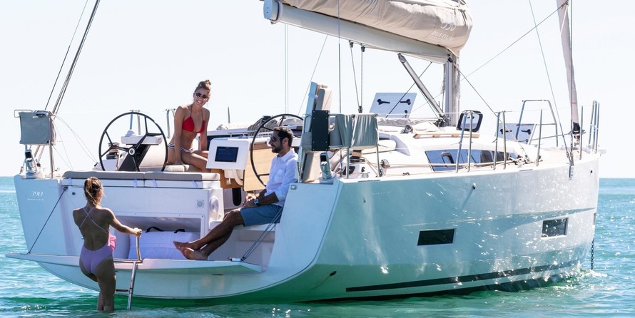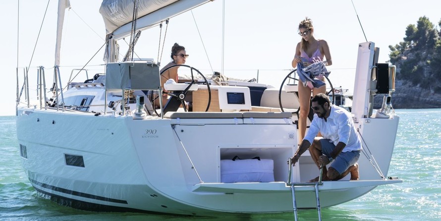3-cabin sailing yacht Dufour 390 - Yaya was built in 2022, and it is docked in Punta Nuraghe Pier, Italy.