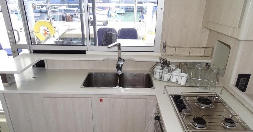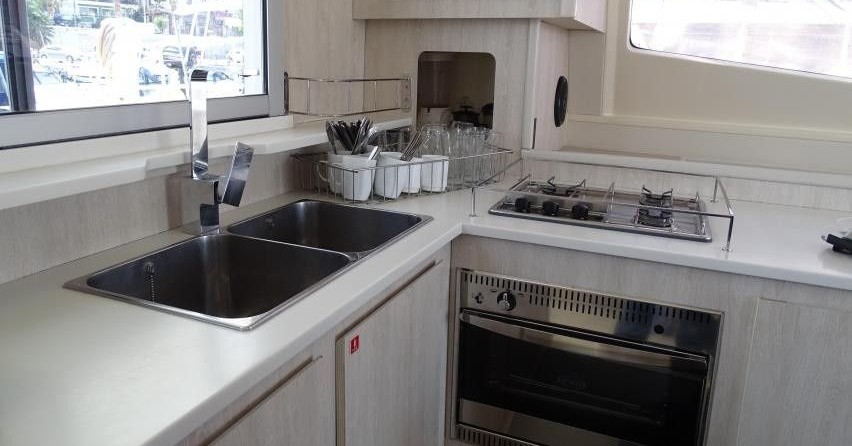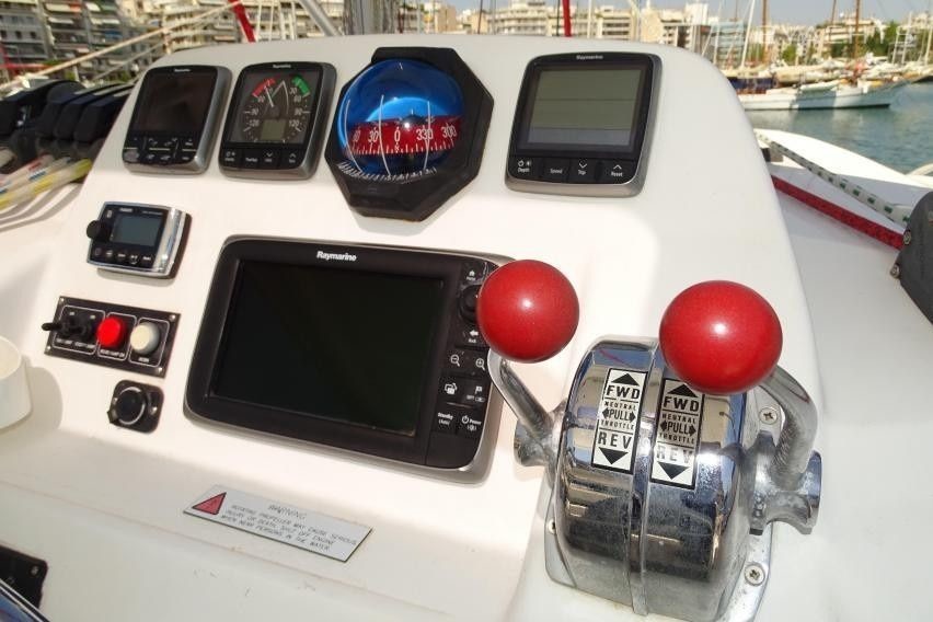 Boat equipment features classical mainsail, solar panels, generator, bimini and outside gps plotter. It also boasts a heating, air conditioning, an audio system, outside speakers and inside speakers. The fully-equipped galley includes a freezer, oven, cooker, sink and kitchen utensils.