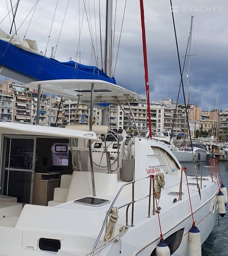 6-cabin catamaran Leopard 44 - La Luna was built in 2015, and it is docked in La Lonja Marina Charter, Spain.