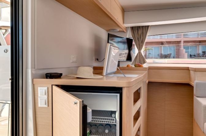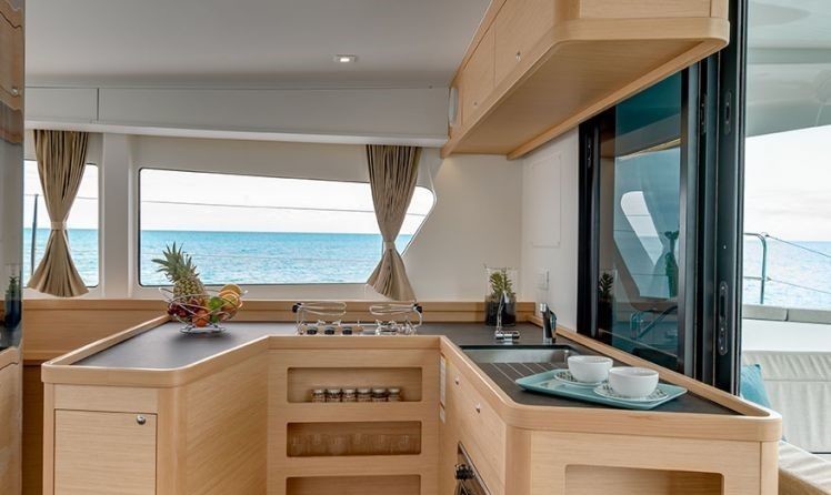 Boat equipment features classical mainsail, solar panels, bimini and outside gps plotter. It also boasts an an audio system, outside speakers and inside speakers. The fully-equipped galley includes a coffee machine, oven, cooker, sink and kitchen utensils.