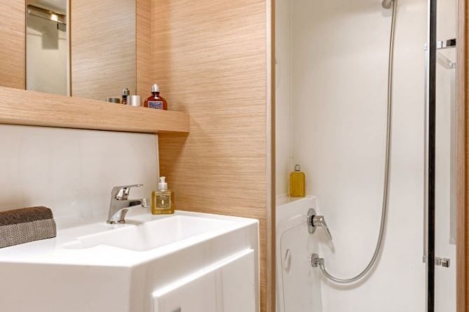 Catamaran Gamma Leonis offers 4 toilets with a shower.