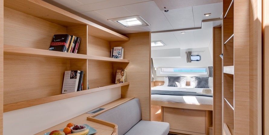 Gamma Leonis can accommodate up to 12 people in 2 single cabins, 4 double cabins and a saloon with 2 extra beds. Pillows and blankets are included in the price.