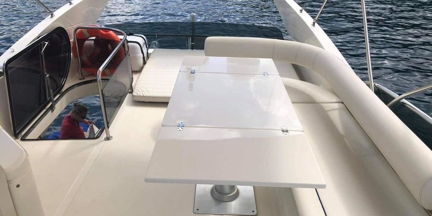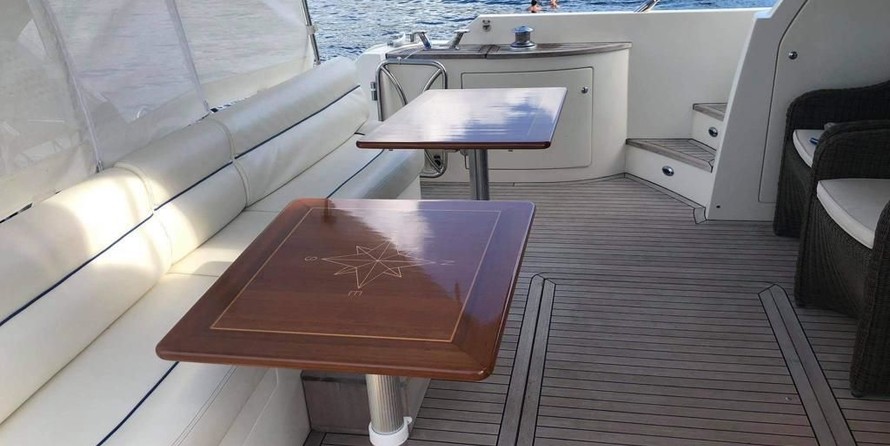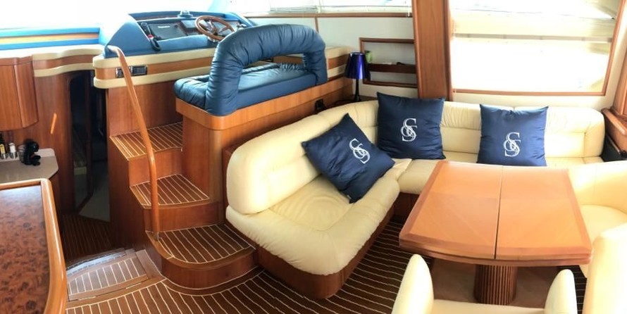 This motor yacht is operated by the charter company Anxur Yacht Service.