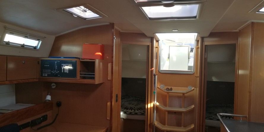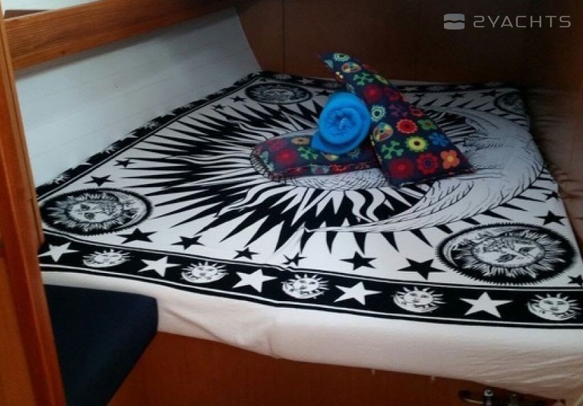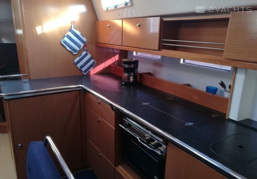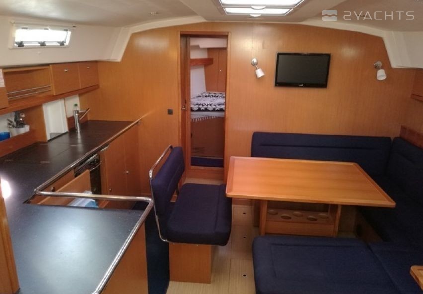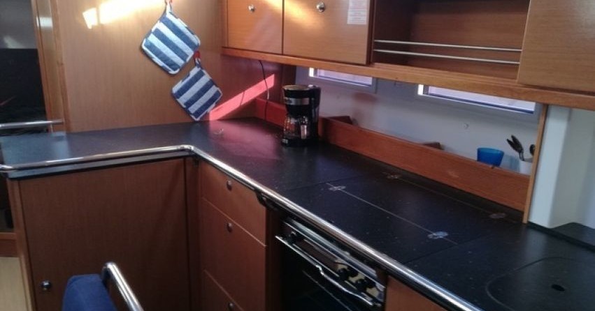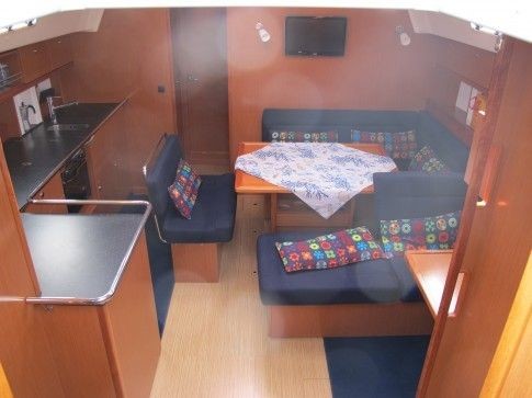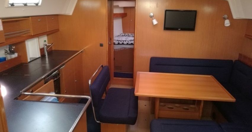 Boat equipment features Classical mainsail, radar, bimini and outside gps plotter. It also boasts a flat screen tv, heating, an audio system, outside speakers and inside speakers. The fully-equipped galley includes an oven, cooker, sink and kitchen utensils.