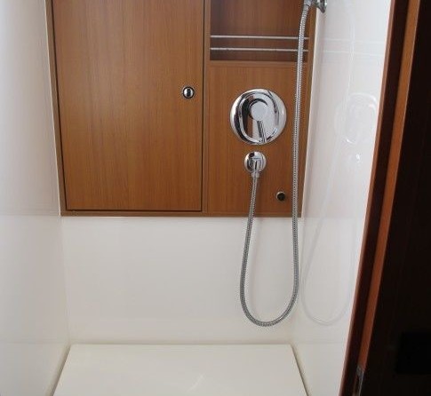 Sailing yacht Ewoo offers 3 toilets with a shower.