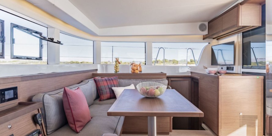 This catamaran is operated by the charter company Eolian Sailing.