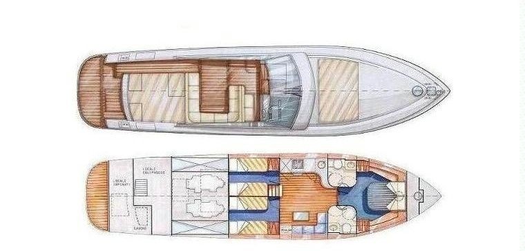Boat equipment features radar, generator, salon gps plotter and bow thruster. It also boasts a heating, air conditioning, an audio system, outside speakers and inside speakers. The fully-equipped galley includes a coffee machine, cooker, sink and kitchen utensils.