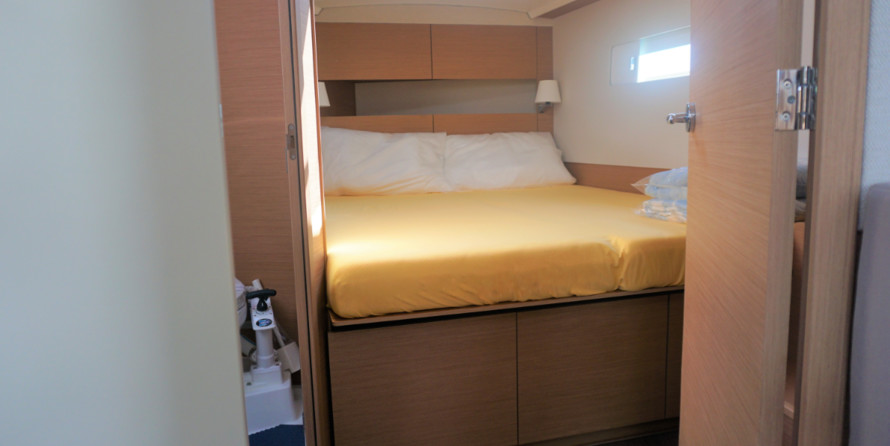 Blue Dot can accommodate up to 6 people in 3 double cabins. Pillows and blankets are included in the price.