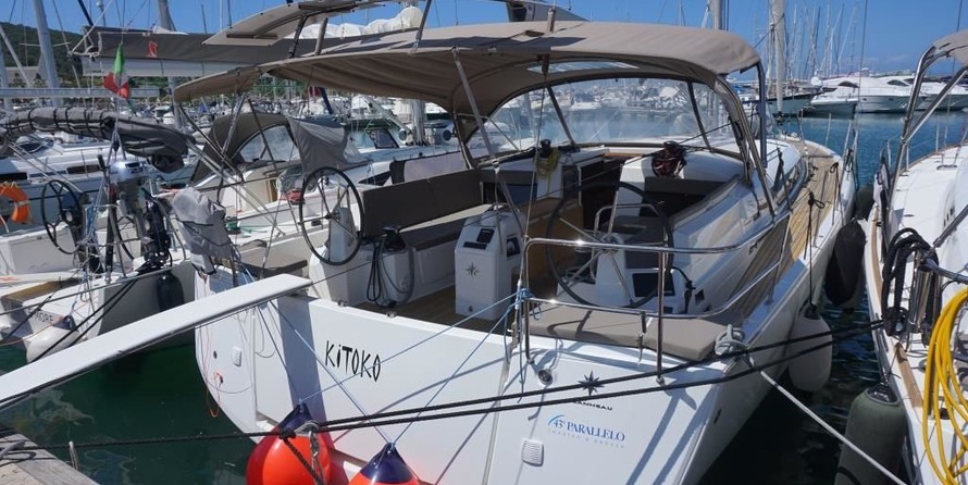 6-cabin sailing yacht Jeanneau Sun Odyssey 490 - Kitoko was built in 2020, and it is docked in Marina di Scarlino, Italy.