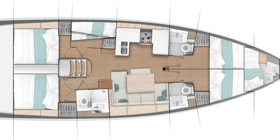 Boat equipment features rolling mainsail, electric winches, solar panels, bimini and bow thruster. It also boasts a heating, an audio system, outside speakers and inside speakers. The fully-equipped galley includes an oven, cooker, sink and kitchen utensils.