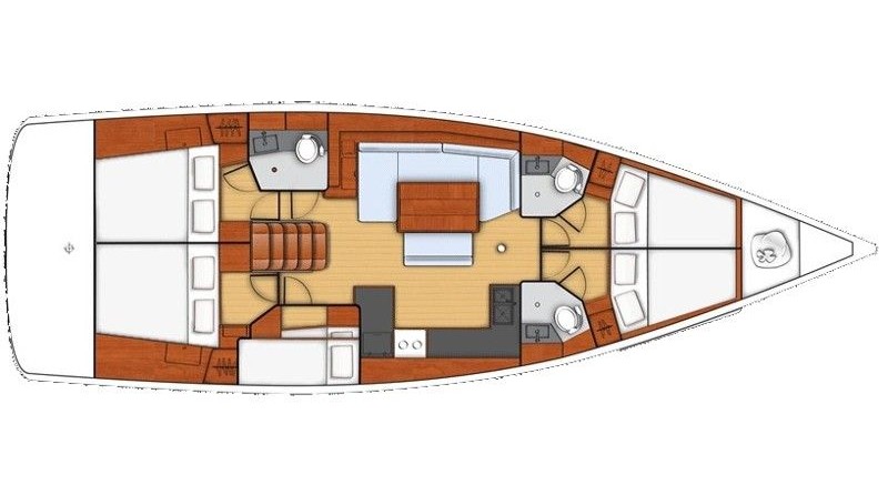 Bandol can accommodate up to 12 people in 4 double cabins and 1 double cabin with a bunk bed. Pillows and blankets are included in the price.