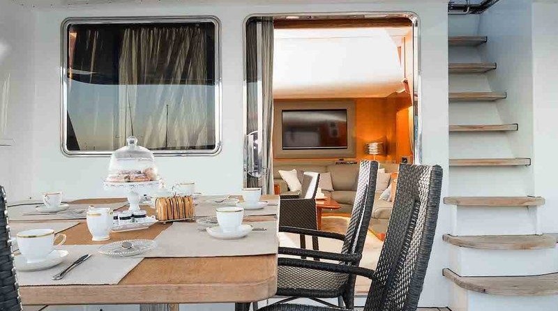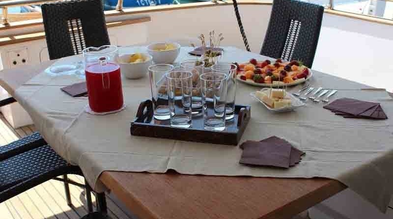 Claudia Amber can accommodate up to 8 people in 4 double cabins. Pillows and blankets are included in the price.