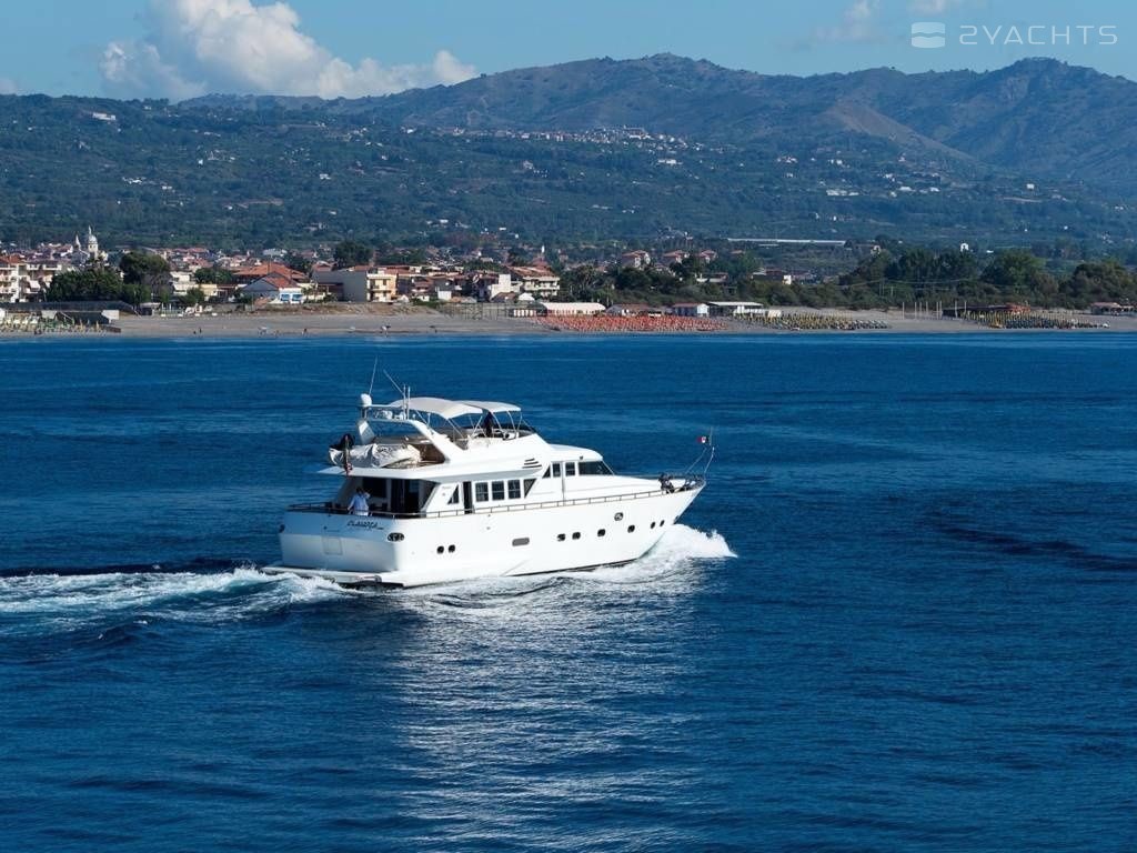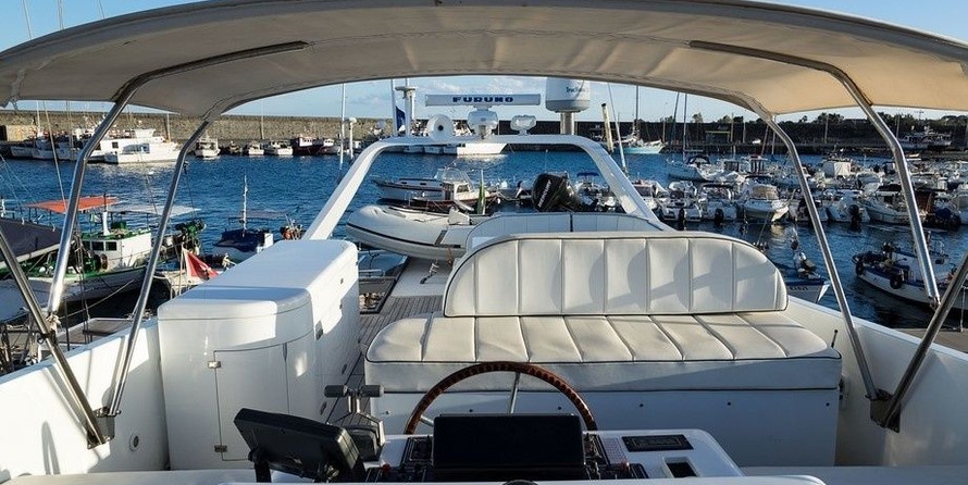 4-cabin motor yacht Maiora 22 S - Claudia Amber was built in 1999, (renovated in 2021,) and it is docked in Capo d’Orlando marina, Italy.
