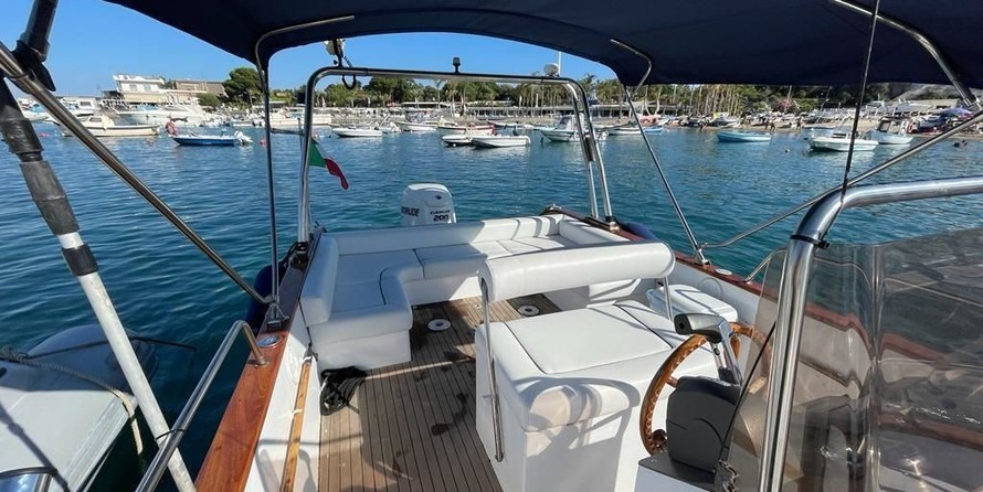 This motorboat is operated by the charter company Portum Charter.