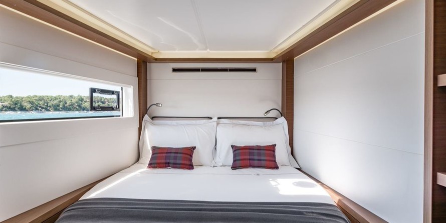 Boat equipment features classical mainsail, radar, bbq, bimini and outside gps plotter. It also boasts an audio system, outside speakers, flybridge, kayak and stand up paddle. The fully-equipped galley includes coffee machine, oven, cooker, sink and kitchen utensils.