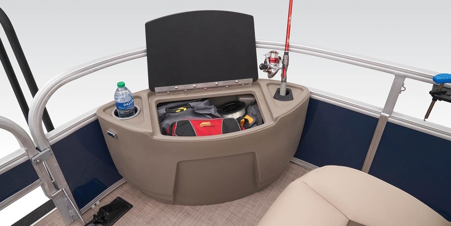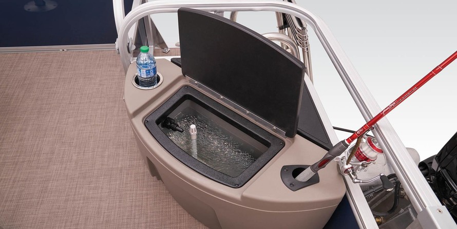 Aft rotomolded compartment w/8-gal. (30.28 L) aerated livewell w/shutoff valve, drink holder, rod holder, battery storage & composite lid w/ruler