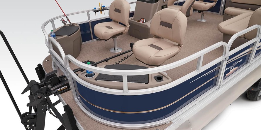For one, this boat has a nimble and easy-to-tow 20’ length overall, but still provides plenty of playpen room for a crew of eight. Speaking of the playpen—inside the tall railings (great for boating with kids!), you’ll find all the features anglers want on a fishing boat, including two aerated livewells, rod holders, four fishing chairs and pre-wiring for an optional fishing package.
