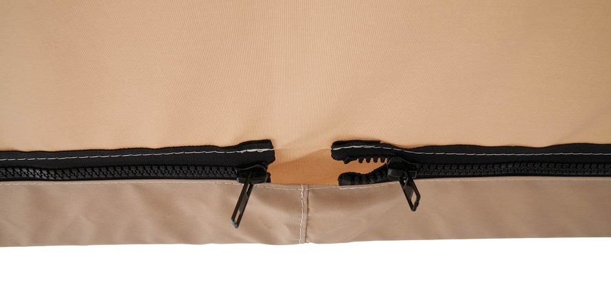 9' (2.74 m) Bimini top w/LED courtesy lights, protective boot & accepts optional drop-down changing curtain (Bimini top will be Sand colored w/Copper Red or Indigo Blue fencing colors)