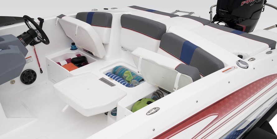 3-across bench seat w/molded-in storage & flip-down seatback w/non-skid surface