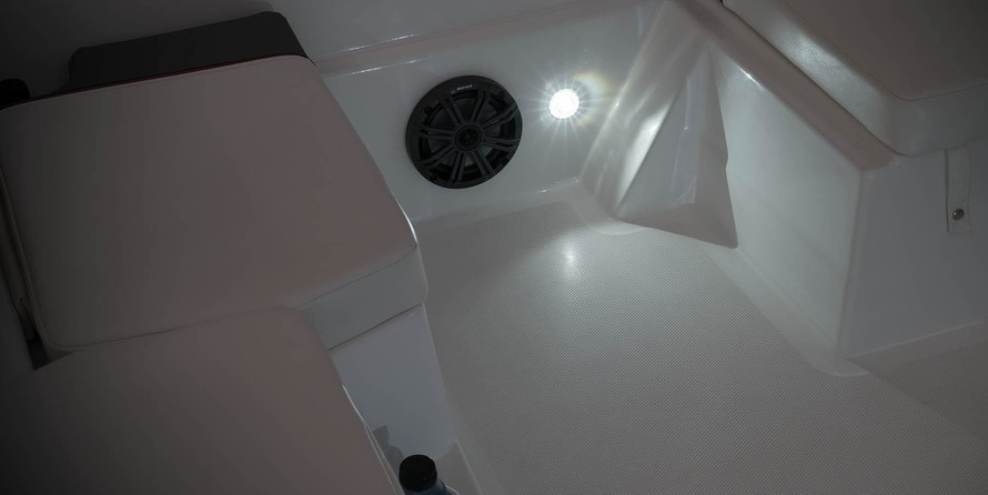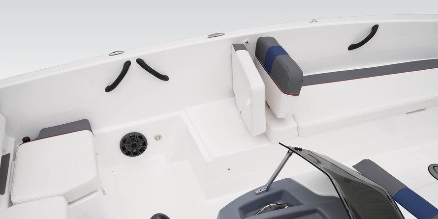 Midship port flip-up cushion allows easy side entry w/out stepping on upholstery
