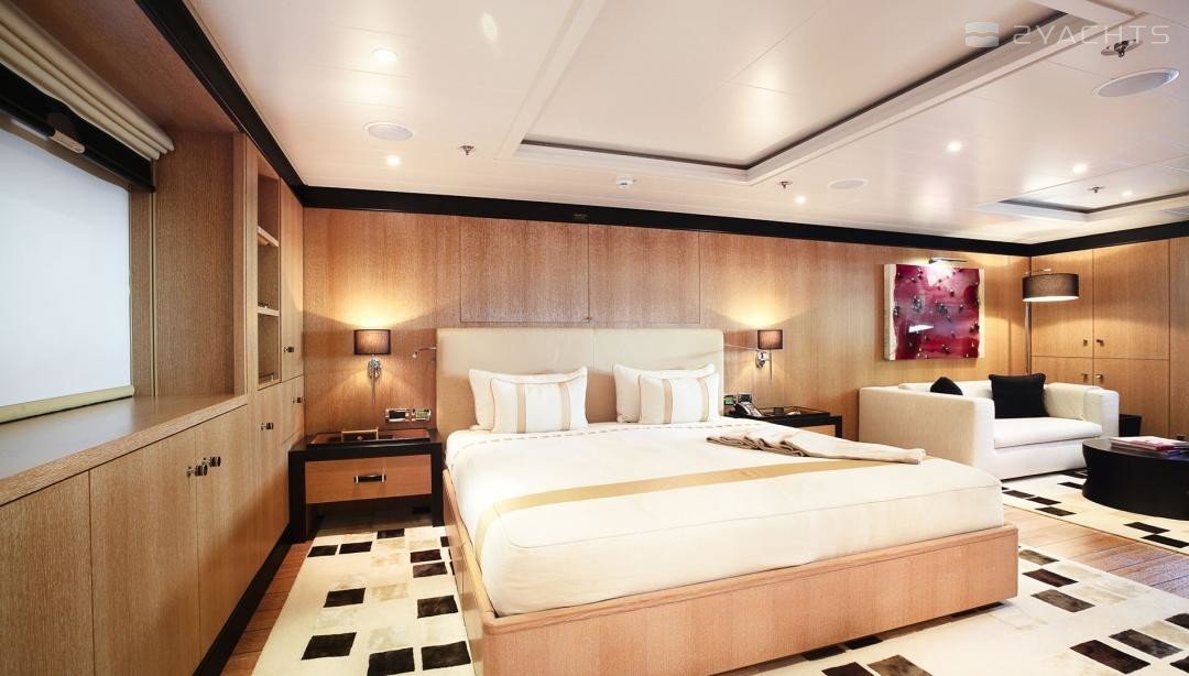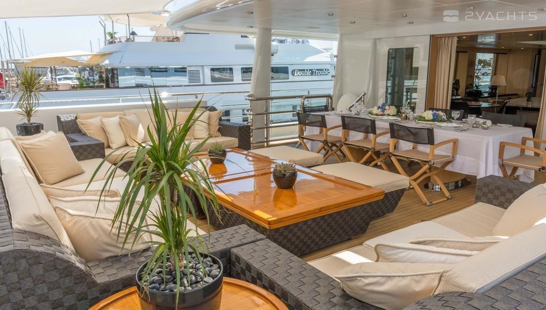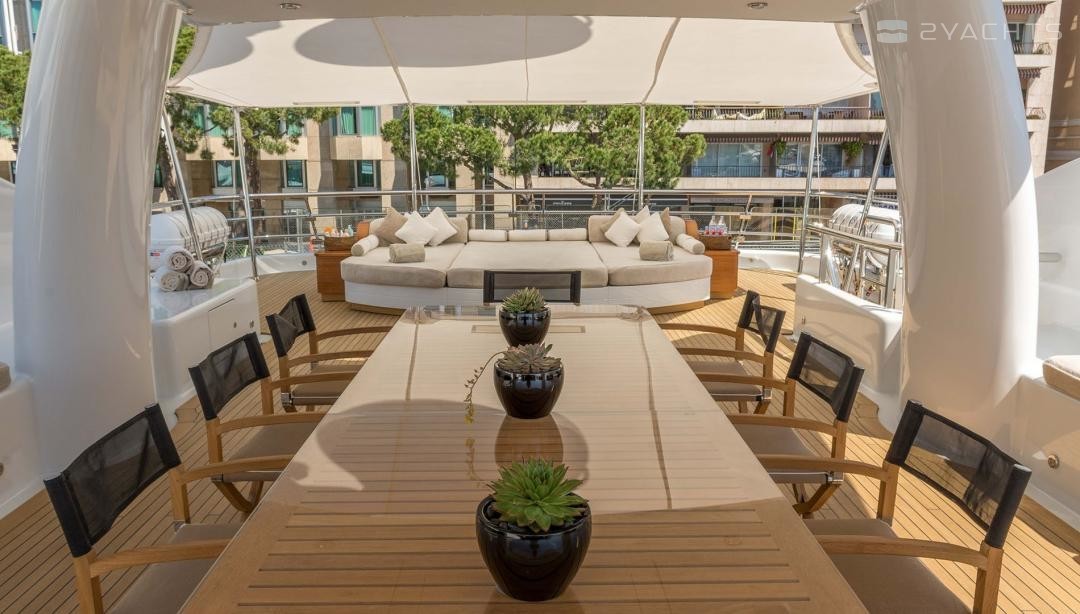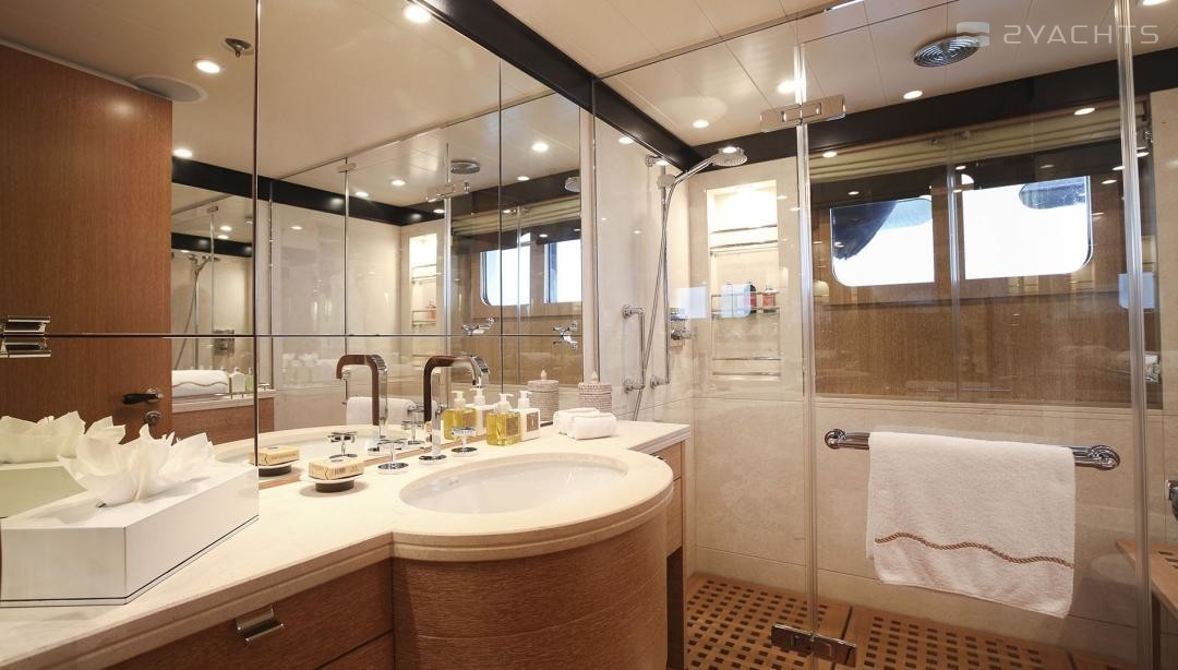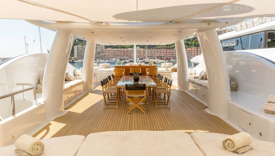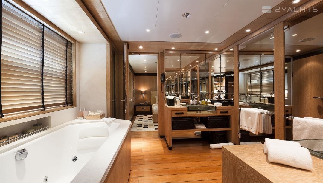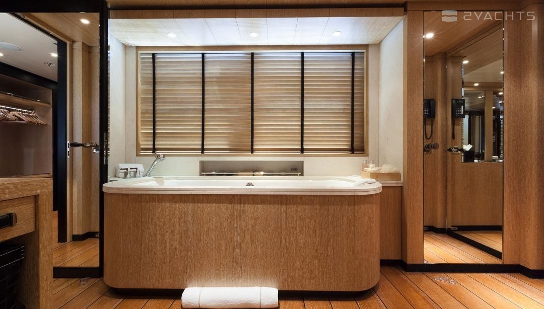 Die Motoryacht bietet Platz für 14 Gäste in 6 Kabinen mit einem Innenraum-design von Laura Sessa Romboli und ein Exterieur-design von Tim Heywood.