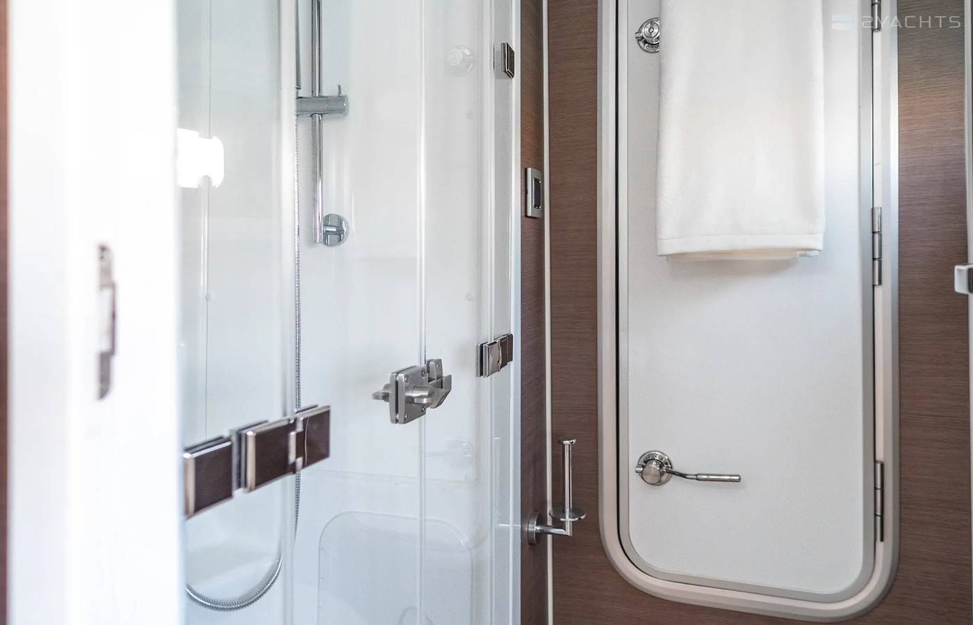 - Automated aft tilt-and-turn door integrating indoor and outdoor spaces