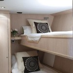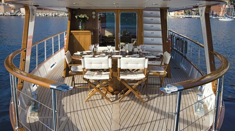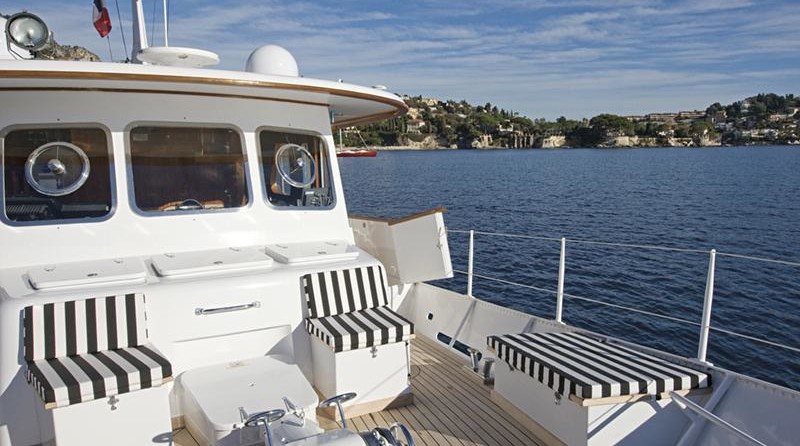 El yate a motor puede alojar a 7 personas en 3 cabinas y un diseño exterior por Benetti, De Vries.
