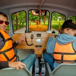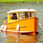 Un bateau dans le style américain remorqueur. Le boîtier de bateaux , est utilisé dans les eaux peu profondes, des rivières, des étangs, petits lacs, où il n'existe pas de grandes vagues. Le boîtier de bateaux va sans application de la cale ou le conducteur, par la méthode Ears & Wedges (les Oreilles Et les Coins).