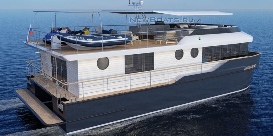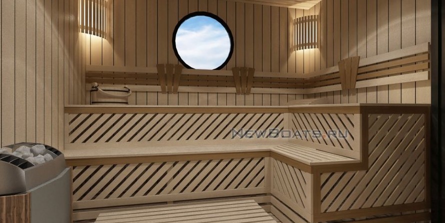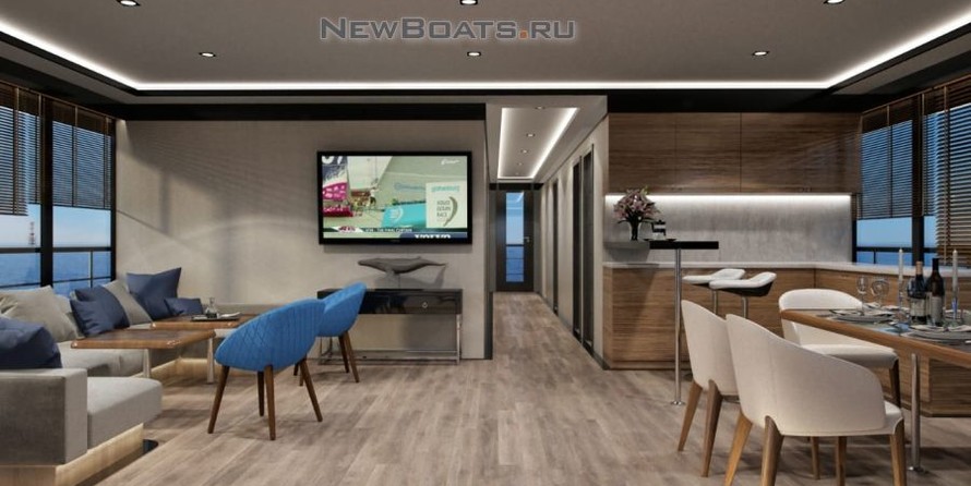 De même, l'espace intérieur est ici beaucoup plus grand et plus pratique que sur les yachts de la même taille. Tout l'espace est conçu comme dans n'importe quelle maison de campagne. Les salles de séjour, d'un salon salle à manger, les salles de bains. Tout de plein pied, sur un seul niveau.