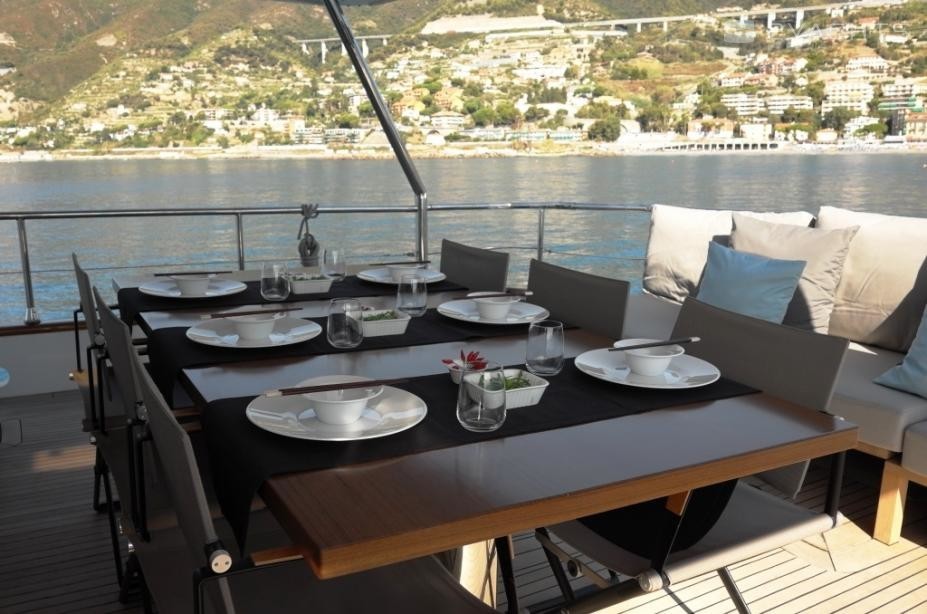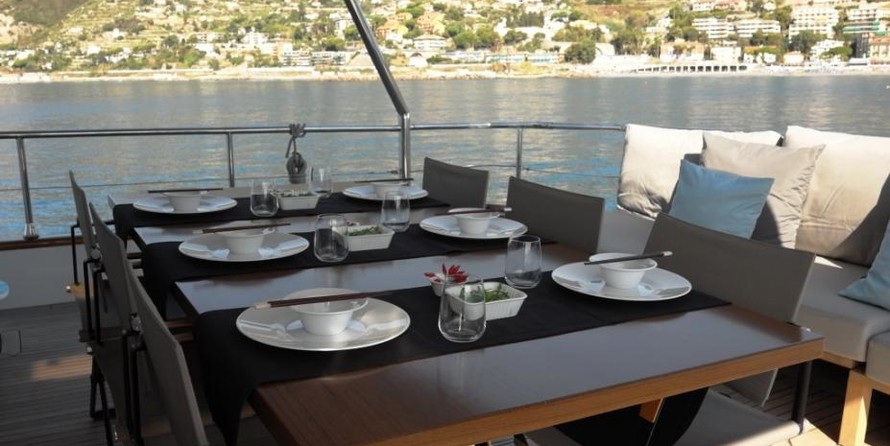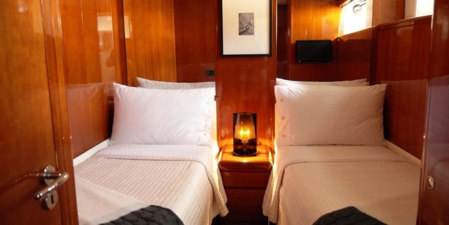 Le motor yacht peut accueillir 8 personnes dans les cabines.