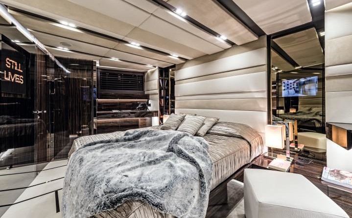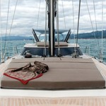 Le voilier peut accueillir 8 personnes dans 4 cabines. Le yacht a été conçu par l'Amiral Centro Stile.