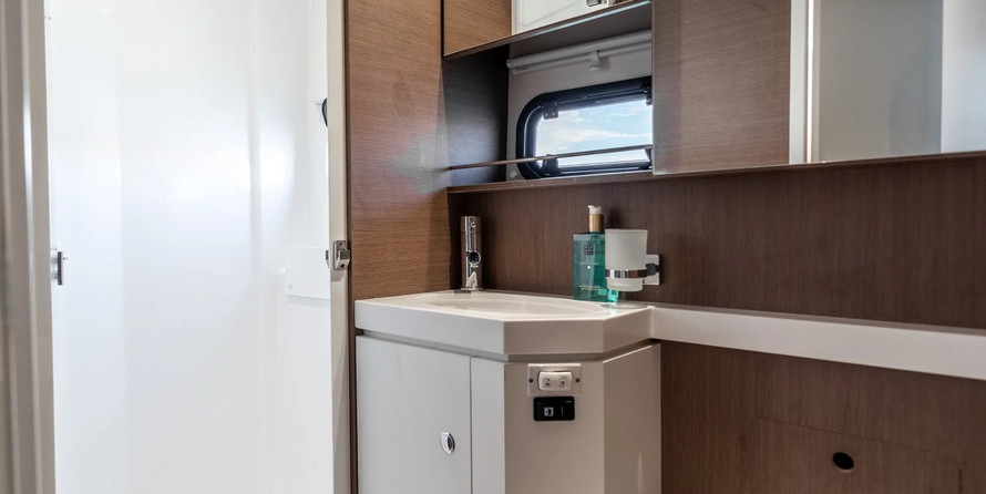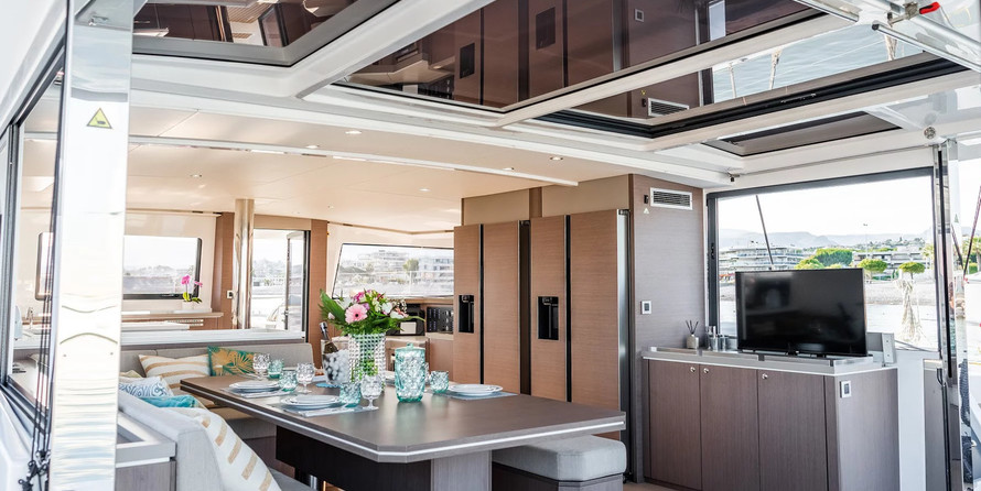- Automated aft tilt-and-turn door integrating indoor and outdoor spaces
