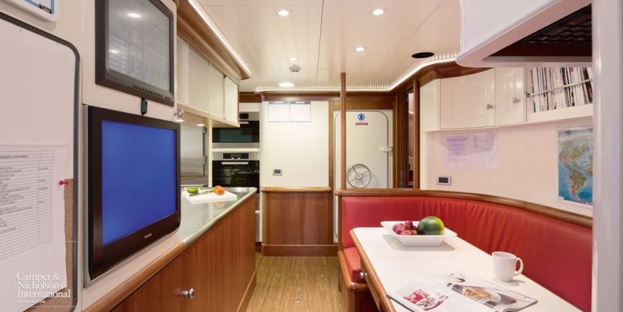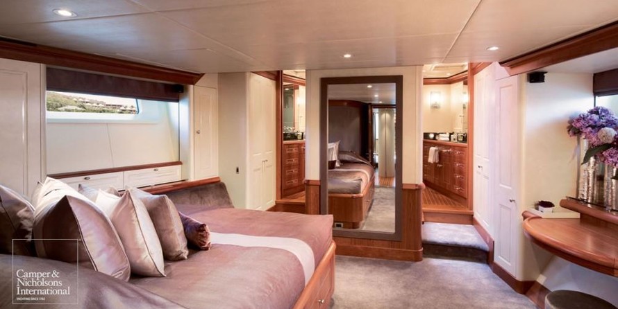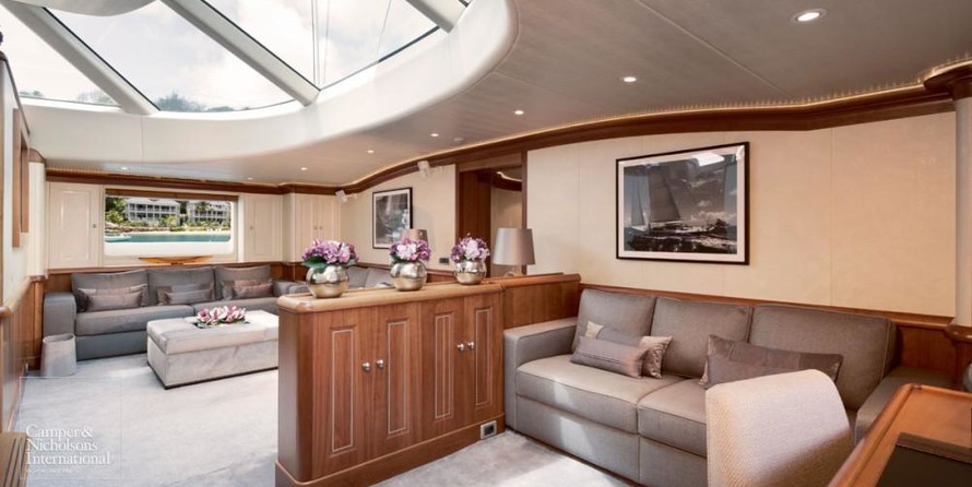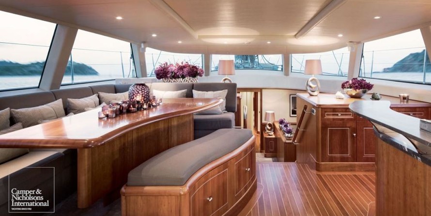 La barca può ospitare fino a 6 ospiti in 3 cabine con un design da Adam Lay Studio e un design esterno da Dubois.