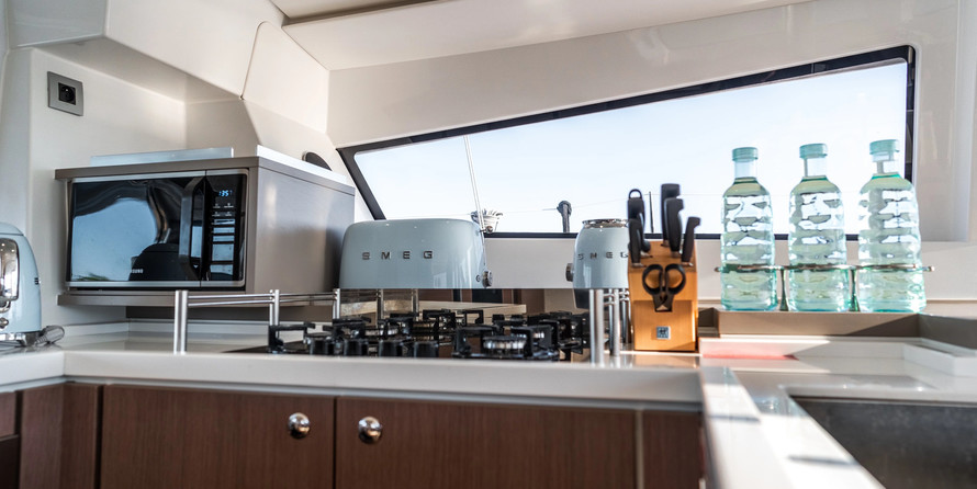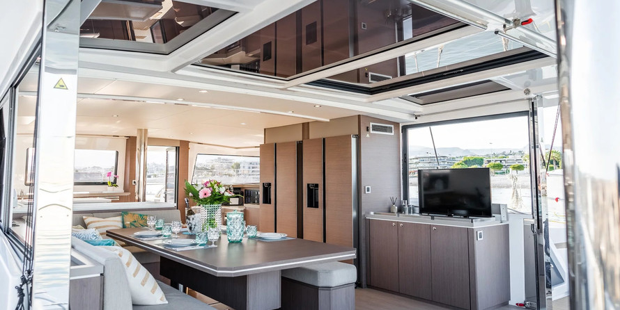- Automated aft tilt-and-turn door integrating indoor and outdoor spaces