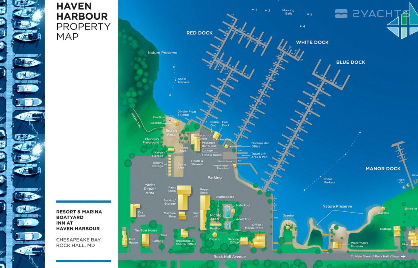 A full-service marina, boatyard and inn, including state-of-the-art amenities, more than 200 floating and fixed slip rentals, and comprehensive in-house services.