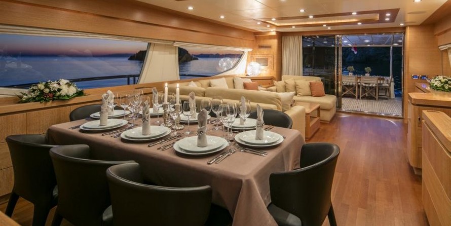 Моторная яхта может разместить 10 гостей в 4 каютах.